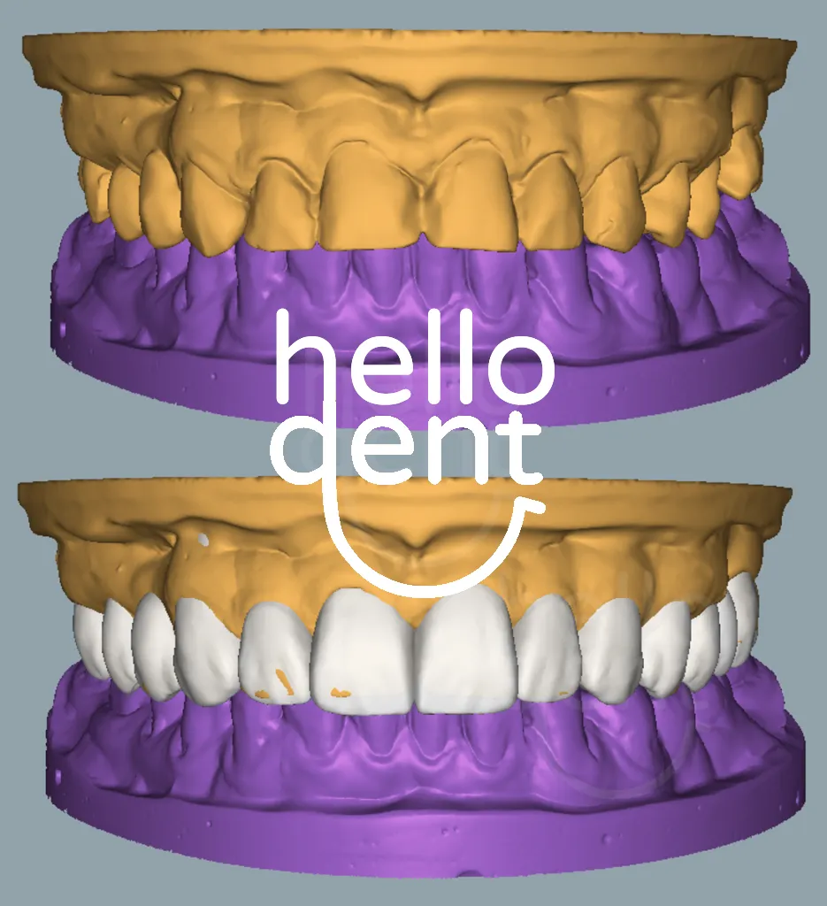 Una vez que el modelo impreso en resina es recibido de vuelta en el consultorio, se procede a realizar el mock-up, un procedimiento que consiste en la colocación temporal de carillas provisionales o de resina directamente en los dientes del paciente para mostrar una simulación del resultado final antes de proceder con la realización de los tratamientos definitivos.