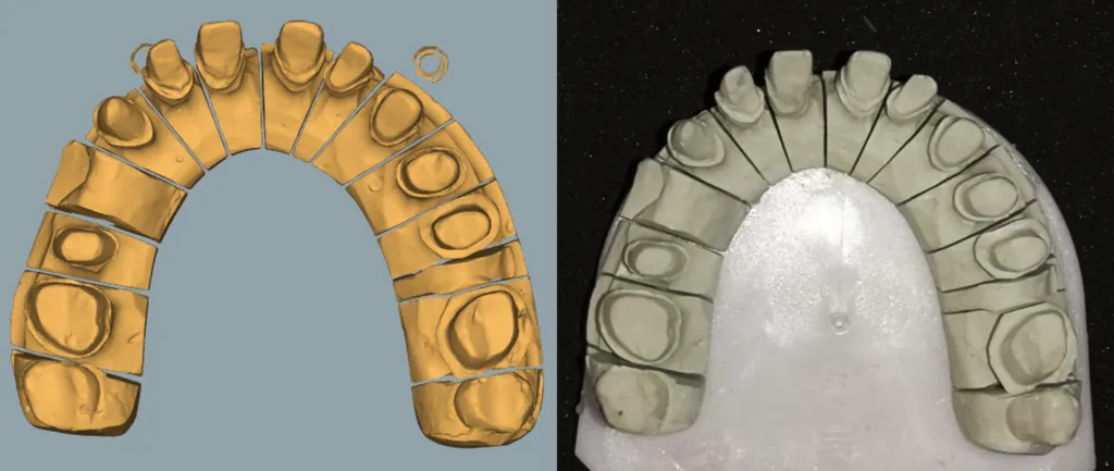 Una vez obtenido el encerado dental digital en 3D, se procede a enviar el archivo STL al laboratorio dental para realizar la impresión en resina del modelo de trabajo. Esta impresión se realiza con la finalidad de obtener una reproducción precisa de la estructura dental del paciente, lo que permitirá llevar a cabo un diseño y confección del mock-up con la mayor precisión posible.