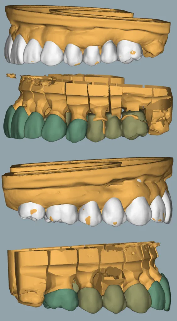 En el proceso de rehabilitación, utilizamos una metodología digital para la fabricación de las coronas de circonio, lo que permitió una precisión milimétrica en la adaptación y estética de las coronas. La comunicación con el paciente y el laboratorio dental se llevó a cabo mediante archivos digitales y software especializado, lo que facilitó una mejor comprensión y aceptación del plan de tratamiento.